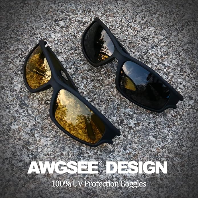 - TAC POLARIZED LENS ► These AWGSEE Sunglasses lens offering 100% UV Protection, will reduce glare, eliminate reflected light and scattered light. Helps to ease eye strain from long hours in the sun, increase visual clarity, contrast, making them an excellent choice for general outdoor , driving, fishing and water sports activities.