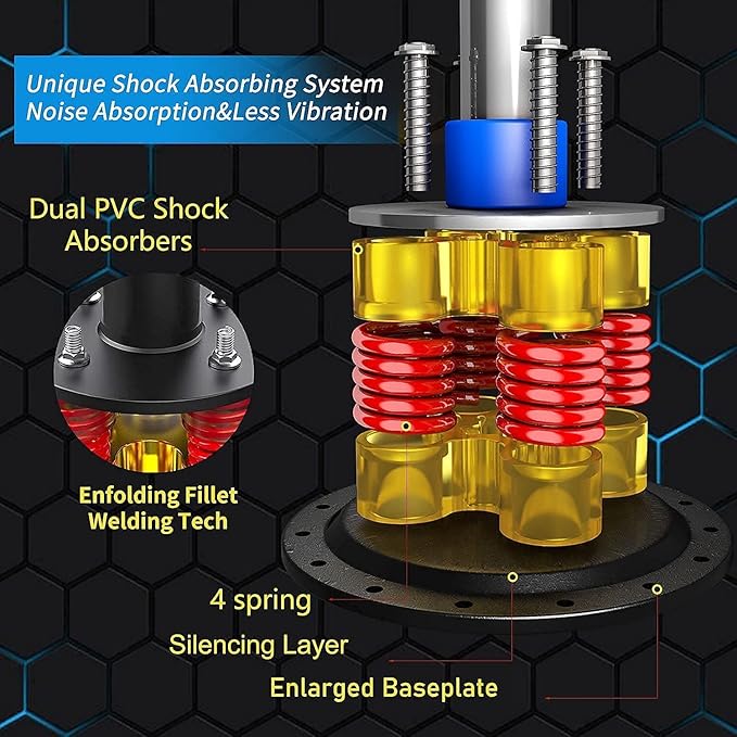 - 【Stable Punching Bag with Stand】-7.5MM thicken ABS base bears 140kg weight easily, supported by 12 strong suction cups help keep the kickboxing bag with stand in position on smooth and even floors, the base weighs up to 205lbs when filled with sand for max stability (Base will be more stable if filled with sand than water) ;4 springs deliver 15-45° fast-rebound, 2 absorbers achieve 360° shock and noise absorption during your boxing, punching, hitting, kicking.