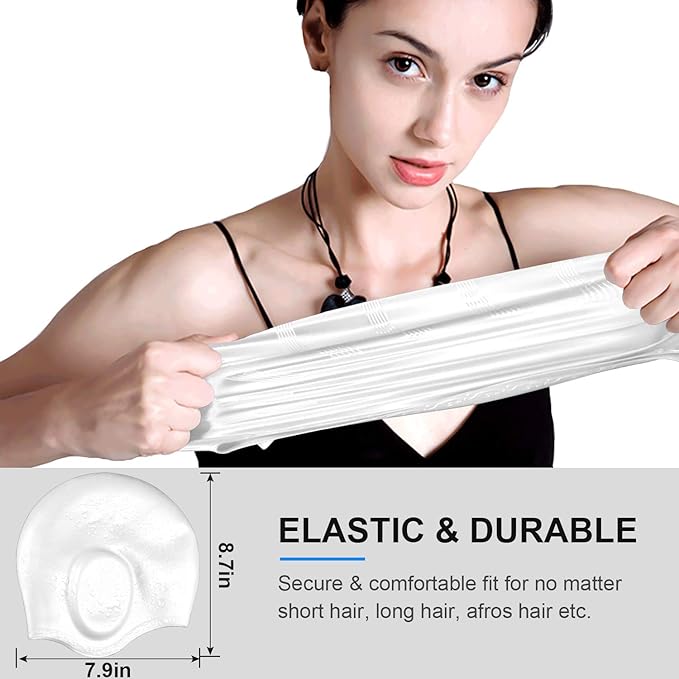 - Non-slip & Waterproof:Silicone bathing caps work well to prevent water from entering your ear and head, and with non-slip design, you don't need to worry about the swimming cap during your swimming. The only thing you need to do is enjoying your swimming.