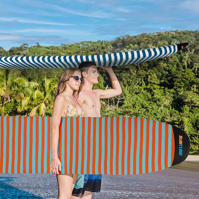 - SURFBOARD SOCK COVER to protect your surfboard and SUP from dings during transport and uv sunlight that causes surf board to yellow. Provides extra protection inside any travel bags or in storage. Can be conveniently folded for easy storage in a backpack or car, making this idea for any surf session, travel, and beach outing.