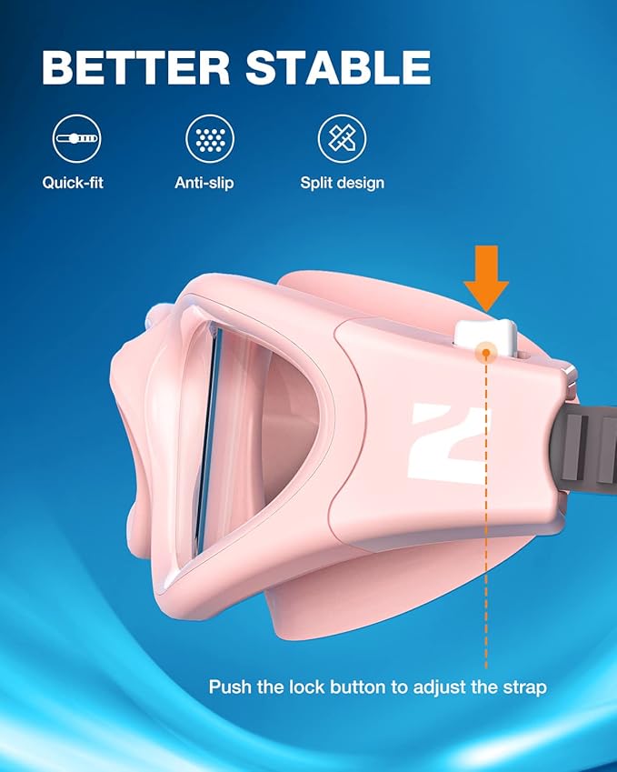 - [Snug Fit for Different Face] - These swimming goggles come with a soft and flexible silicone gasket, adjustable split head strap, TPR ergonomic nose bridge, which provides excellent suction and ensures non-slip coverage, that is designed to fit a wider range of faces shapes for both women and men