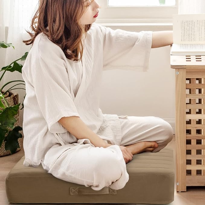 - [Convenient Handle] Handy handles are convenient to carry and move, so you can take the giant floor pillow easily. Square 22x22 inches, designed with solid khaki color, this floor seat cushion can be used as a decorative baby pouf pillow, kids floor pillow cushion, adults meditation pillow, floor tatami cushion, or even pet dog bed, more comfortable and softer than sitting on the hard floor