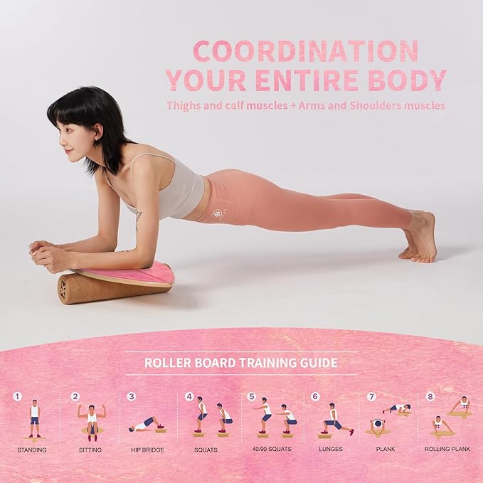- WON’T SCRATCH FLOORS&EASY-GLIDE WOODEN ROLLER:The balance board surface is smooth and don't worry about damaging the floor.This roller also work great on different types of floor,including wood, carpet, cork, concrete,etc