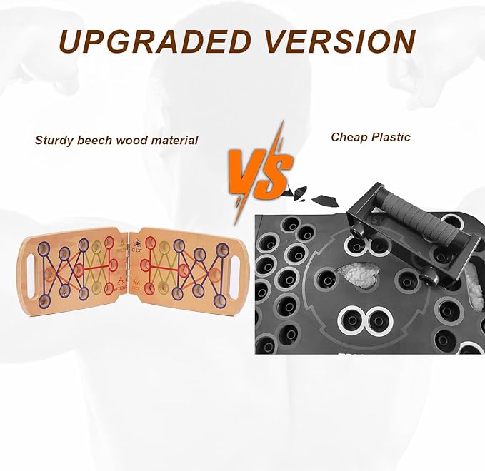 - 【MATERIAL & NON-SLIP】 Pushup board are made of high-quality solid wood material.Non-slip handles conforms to ergonomic design.Helps to distribute force evenly.Non-slip plugs help stabilize the body during exercise.