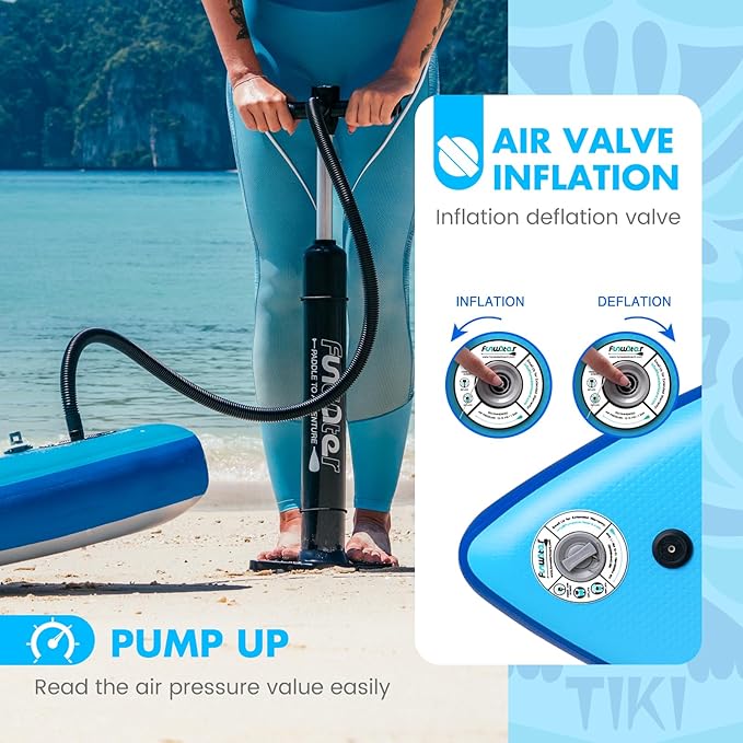 - 【Rich Paddleboard Accessories】Every paddleboard is equipped with manual pump, fins, cell phone waterproof bag, paddleboard backpack, coil foot leash, single paddle, you will get a complete and colorful water experience.