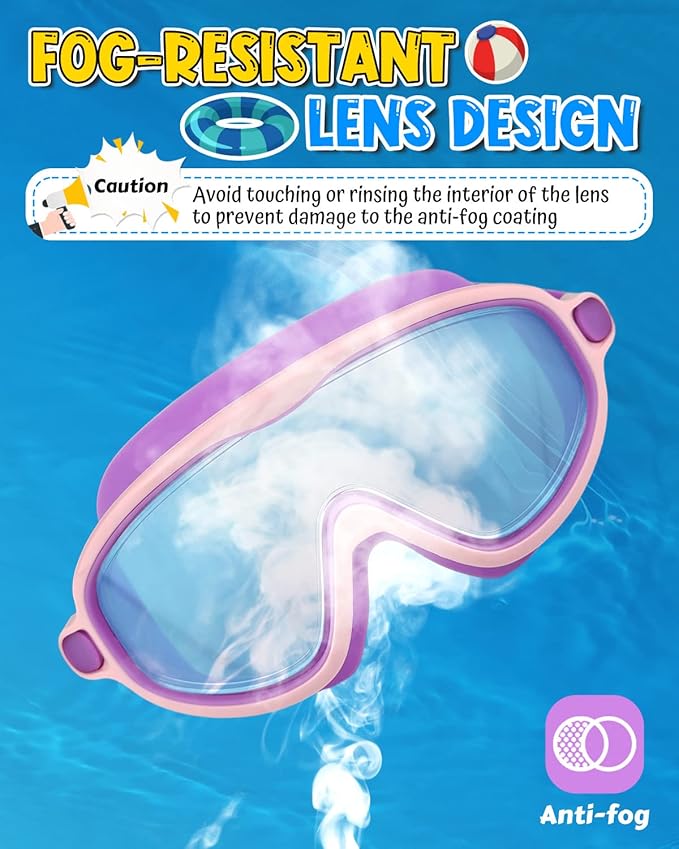 - 【ANTI-FOG & NO LEAKING】 Our swimming goggles are specifically engineered to address the unique needs of kids. The latest anti-fog treatment on the inner lenses guarantees clear and distortion-free vision underwater, keeping kids' sight unimpeded as they explore the aquatic realm. Combined with high-quality silicone cushions, these goggles offer a leak-free swimming experience, so your little swimmers can fully enjoy their time in the water without any distractions or discomfort.