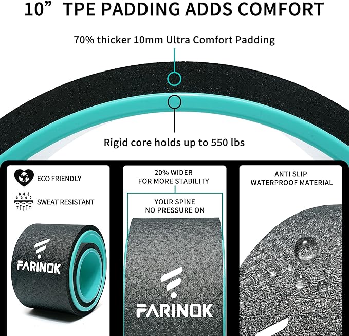 - Widen Padding: Extra wide padding improves your balance when you doing Yoga posture. This yoga wheel is perfect for more difficult stretches, helping your neck, spine, shoulders and making your yoga moves deeper. Your body will be stretched smoothly, and you'll be surprised when you finally gain flexibility and comfort.