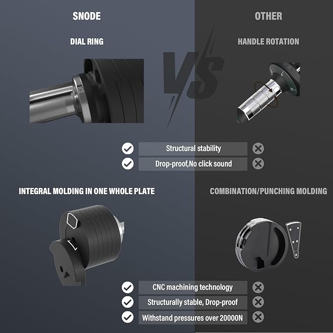 - 【Drop-Proof】All major parts of the dumbbell are made of cast iron, which is durable and drop-proof. The dumbbell cradle is also made of ductile iron, you can say it is the M0ST durable adjustable dumbbell on the market.