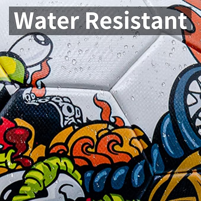 - ⚽Water Resistant Soccer Ball: Special Thermal-Bonding technology make the size 5 soccer balls more durable and no thread broken, water will not seepage inside the body. And will provide optimal surface coverage and handling, rain or shine.