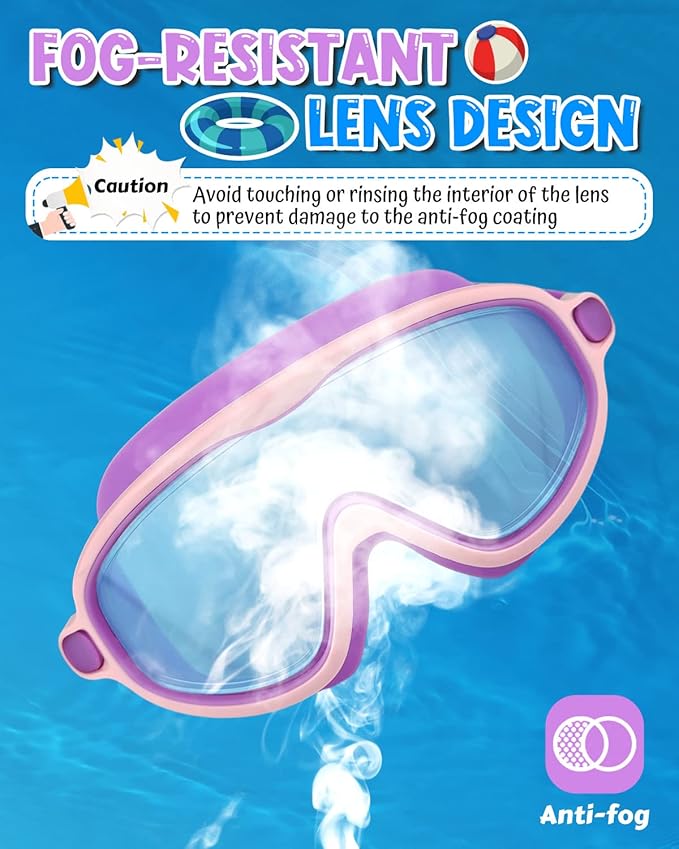 - 【ANTI-FOG & NO LEAKING】 Our swimming goggles are specifically engineered to address the unique needs of kids. The latest anti-fog treatment on the inner lenses guarantees clear and distortion-free vision underwater, keeping kids' sight unimpeded as they explore the aquatic realm. Combined with high-quality silicone cushions, these goggles offer a leak-free swimming experience, so your little swimmers can fully enjoy their time in the water without any distractions or discomfort.