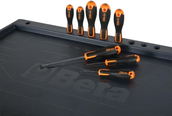 - QUALITY DESIGN - This tool chest, designed and manufactured in Italy, features a thermoplastic worktop with anti-fall edges and the drawers with ball-bearing slides are protected from spills and scratches with rubber mat liners. This portable toolbox also features a front centralized safety lock for increased security.