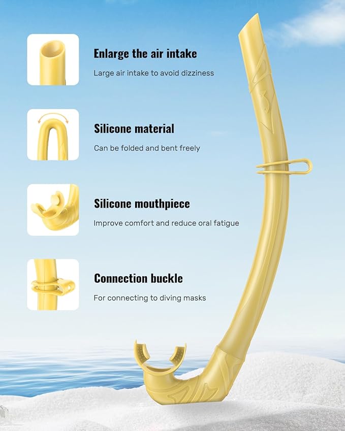- 【Large Diameter Snorkel Tube】The large diameter breathing tube provides us with sufficient and smooth fresh air.When we swim or snorkel underwater, there is no need to worry about insufficient breathing. It can provide you with a safe and comfortable downstream gaming experience.