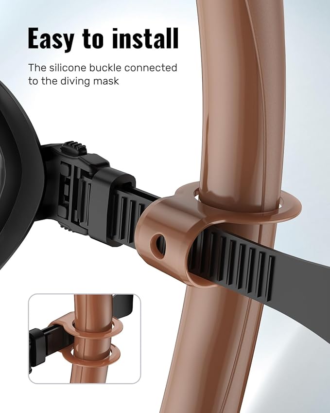 - 【Silicone Snorkel Keeper】The holder is different from others. WSTOO's holder is made of soft silicone material and is made of two connected circles. When connecting the breathing tube to the dive mask, only one side needs to be removed. Very easy to operate.