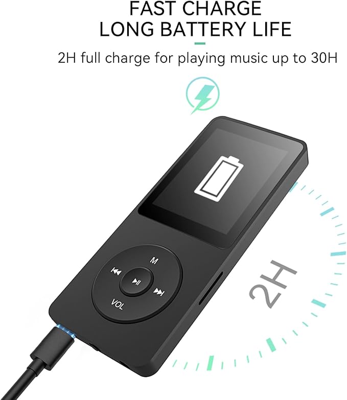 - 【32GB Built-in Memory & Long playback time】 Built in 32GB memory capacity, up to 6000 musics can be stored, supports up to 128GB Memory Card(not include)! Built-in Lithium polymer 320mAh battery. Up to 40 hours playback, fully charged within 2hours by Type-C charging cable.
