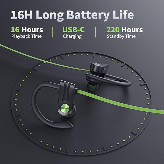 - Long-lasting 16-hour Play Life: With a durable and long-lasting power, these wireless headphones can provide up to 16 hours of continuous music playback. This means that your can enjoy their favorite tunes or make important calls without worrying about running out of power during your workout sessions. (Note: Please use the charging cable provided on the package)