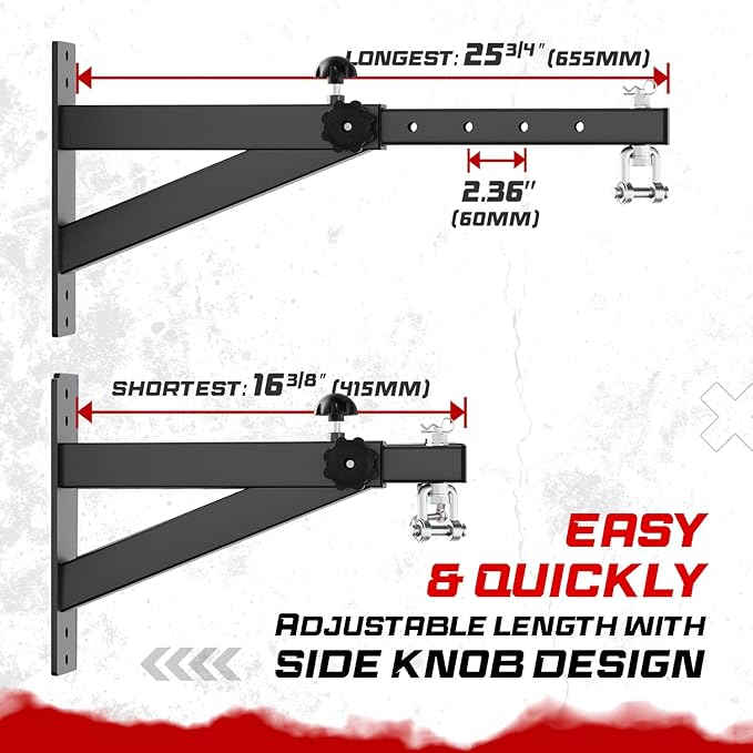 - QUICKLY ADJUST LENGTH: Adjustable length from 16 3/8” to 25 3/4" with 5 different levels to accommodate a variety of spaces and bag sizes; Designed with index plunger to help adjust speed bag mount's length more quickly and easily