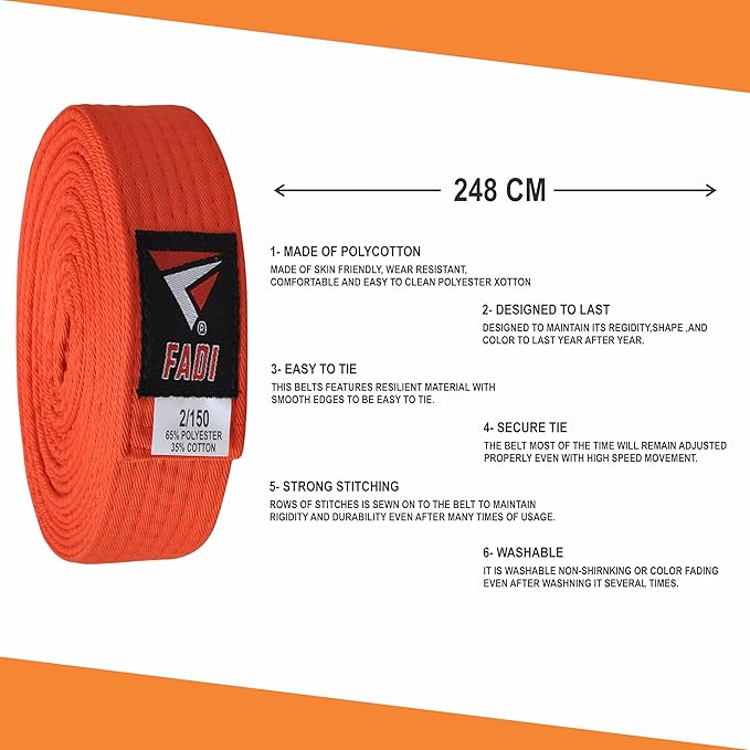 • Wide Range of Colors: Martial Arts Belt for Karate, Judo, Aikido and Taekwondo comes in 9 different colors of White, Yellow, Orange, Purple, Brown, Black, Red, Blue and Green.