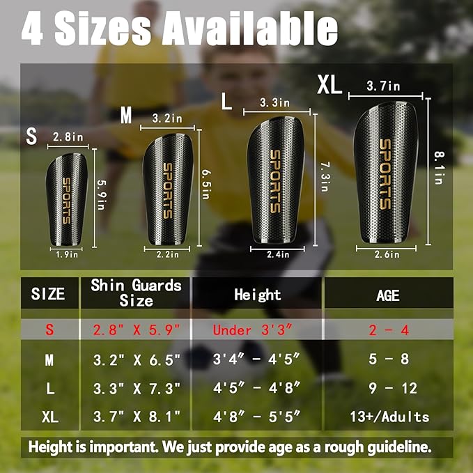 - Great Quality: There are 4 sizes of football shin guard sets to choose from, S, M, L, XL, suitable for soccer players of different ages. Please check the size chart in the picture and choose the most suitable size. If there are any problems with the product, please feel free to contact us, thanks for your purchase and trust
