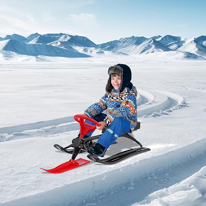 - [Comfortable and Interesting]: Our kids snowboard features a cool kart design that caters to the interests of children, allowing for much easier and fun skiing. In addition, the soft and large PU seat (length: 18 inches) also provides you with an excellent and comfortable driving experience.