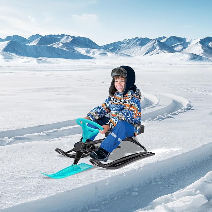 • [Comfortable and Interesting]: Our kids snowboard features a cool kart design that caters to the interests of children, allowing for much easier and fun skiing. In addition, the soft and large PU seat (length: 18 inches) also provides you with an excellent and comfortable driving experience.