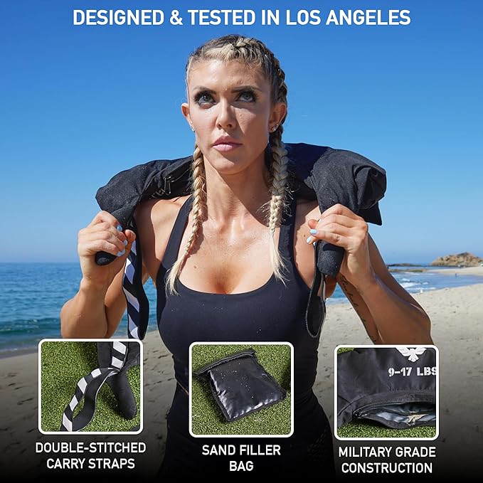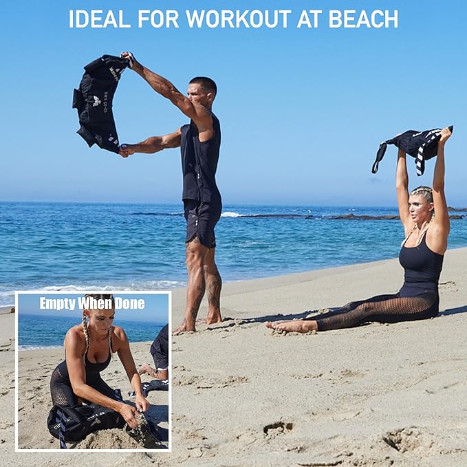 - [VERSATILE & PORTABLE IDEAL FOR ALL GYM, BEACH & OUTDOORS] The Bulgarian sand bags for weight training are go-anywhere gym equipment. Easy to fill or empty sandbags with an inner liner & zipper at any gym, field, beach or park. The heavy duty Bulgarian sand bags for weight lifting, MMA sand bags & martial arts sandbags add a new dimension to your beach sandbag. The strongman sandbags are versatile & portable fitness equipment for fitness enthusiasts & alternative to traditional gym equipment.