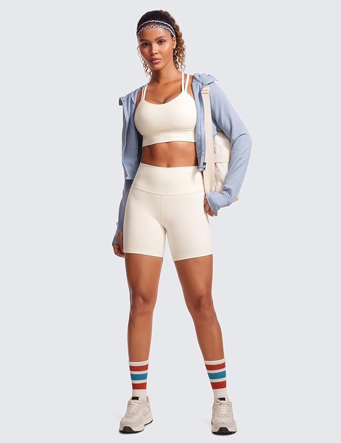 CRZ YOGA Softness Mold Womens Butterluxe Strappy Longline Sports Bra - Double Spaghetti Strap Workout Yoga Crop Top Athletic