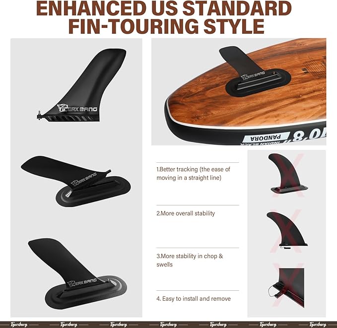 - 【Stylish Aesthetics with Color Variety】Tigerxbang Paddle boards come in three striking colors - Verdigris Green, Indian Black, and Chili Red, each enhanced with a chic wood grain pattern. The unique color palette and design lend sup boards a sophisticated and retro look, PANDORA series paddle boards are not just visually appealing but also engineered for performance, comfort, and versatility, premium choice for wide range of paddle boarding enthusiasts.