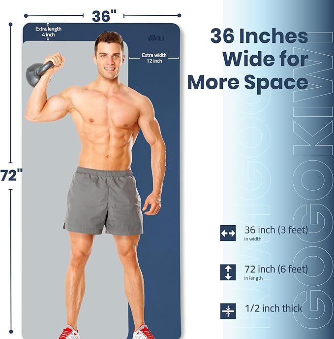 - 【Extra Space for Extra Comfort】 With a size of 72 x 36 inches, our extra large yoga mat is 50% wider than traditional mats, offering ample space for men and plus-size women to move freely and comfortably during their workout