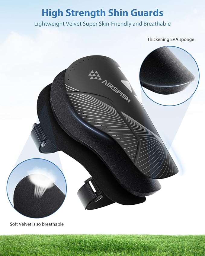 - Meticulous Care for Your Kids: With Airsfish soccer shin guards, you don’t need to worry about your kids getting hurt in their loving soccer games. If you have any questions about this shin guard, please do not hesitate to contact us