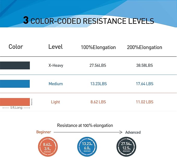 - 【Fun & Easy To Use】 The Bands are Perfect for Resistance Training and Rehabilitation, Which Provides Both Positive and Negative Force. You Can Take a Couple Wraps Around Your Hands for More Tension and a Secure Grip. or Just Tie a Knot, For Use as a Loop Band, and also You Can Double Them Up for Even More Resistance. The Bands are Vibrantly Color-Coded, Once You are Ready for a More Challenging workout, You can Move Up to The Next Color.