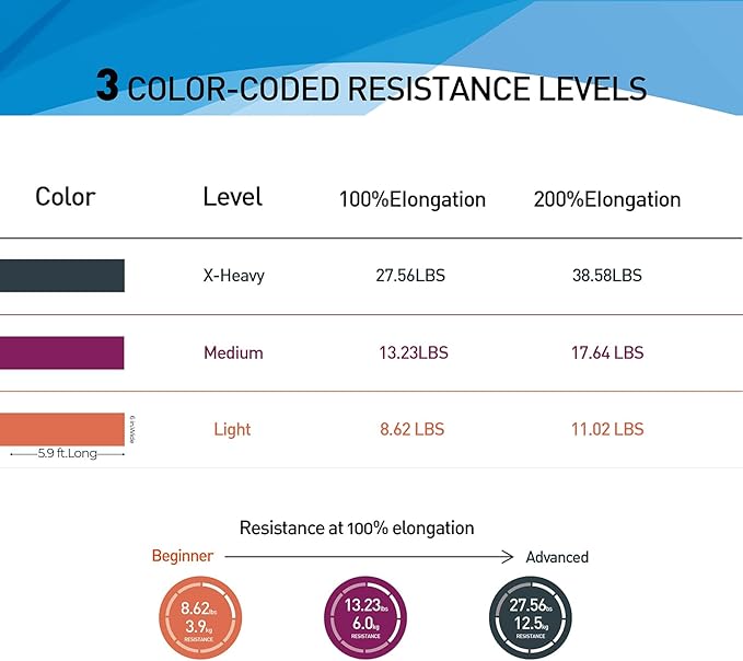 - 【Fun & Easy To Use】 The Bands are Perfect for Resistance Training and Rehabilitation, Which Provides Both Positive and Negative Force. You Can Take a Couple Wraps Around Your Hands for More Tension and a Secure Grip. or Just Tie a Knot, For Use as a Loop Band, and also You Can Double Them Up for Even More Resistance. The Bands are Vibrantly Color-Coded, Once You are Ready for a More Challenging workout, You can Move Up to The Next Color.