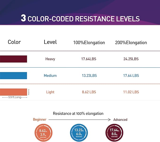 - 【Fun & Easy To Use】 The Bands are Perfect for Resistance Training and Rehabilitation, Which Provides Both Positive and Negative Force. You Can Take a Couple Wraps Around Your Hands for More Tension and a Secure Grip. or Just Tie a Knot, For Use as a Loop Band, and also You Can Double Them Up for Even More Resistance. The Bands are Vibrantly Color-Coded, Once You are Ready for a More Challenging workout, You can Move Up to The Next Color.