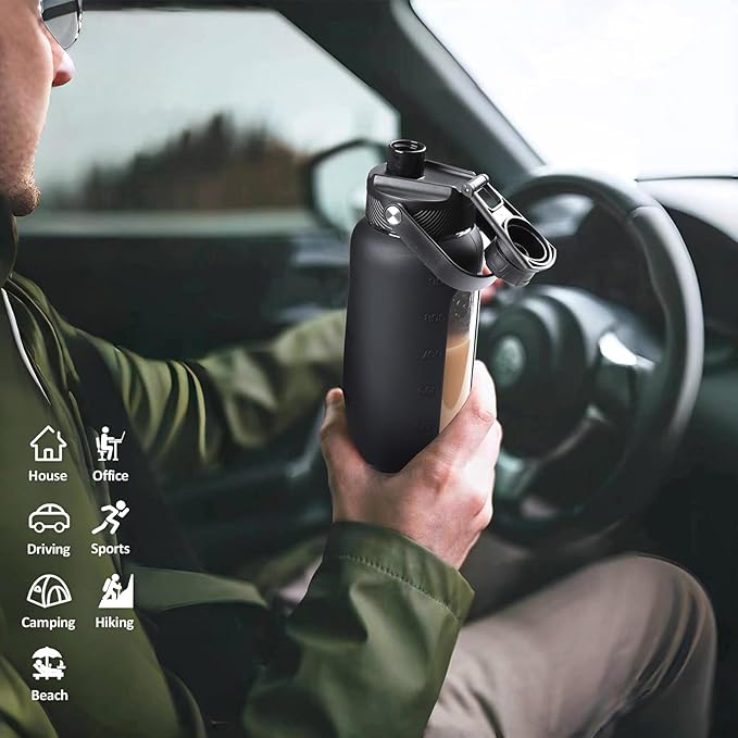 - DUAL LID WATER BOTTLE - Our glass water bottle is equipped with 2 lids, offering a range of options for drinking and transport. The bamboo straw lid makes sipping more effortless, allowing for easy hydration throughout the day whether you're at the home, office, gym, or outdoor activities. The leak-proof spout lid is designed for those who prefer a more traditional drinking habit. The spout enables smooth liquid flow and the handle attached to the lid allows for easy carrying on the go.