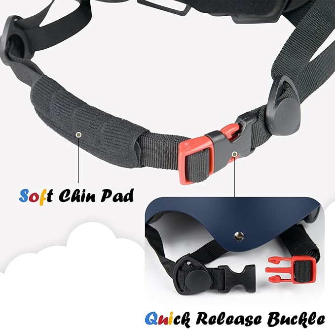 - Fully adjustable, provided by the crank adjustment dial, 2 sets of pads with different thickness, and length-adjustable chin straps
