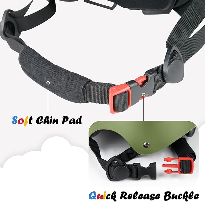 - Fully adjustable, provided by the crank adjustment dial, 2 sets of pads with different thickness, and length-adjustable chin straps