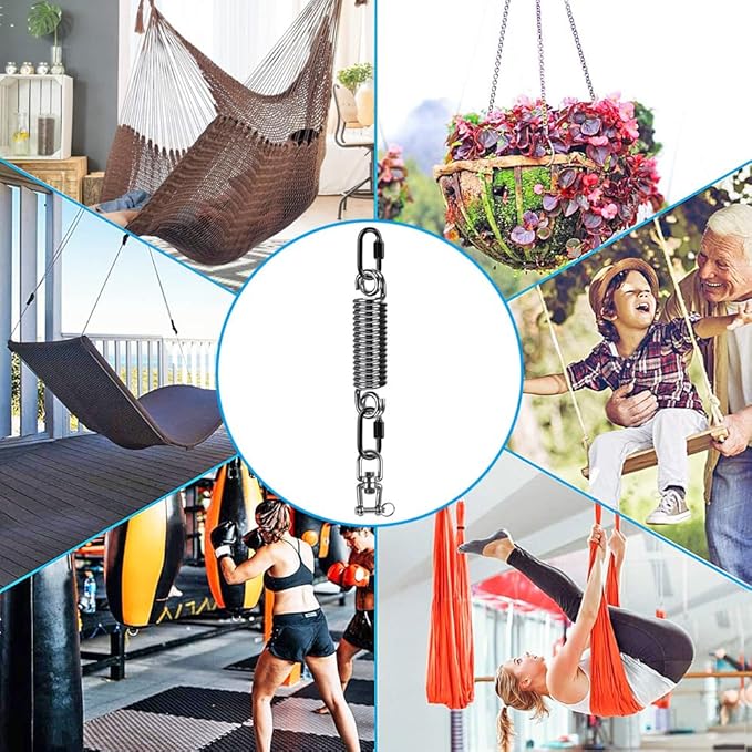 - EASY TO INSTALL: Package include a spring, a swivel and 2 carabiners. Easy to connect swing hanger and punching bag. A unique one piece design and can be installed in minutes