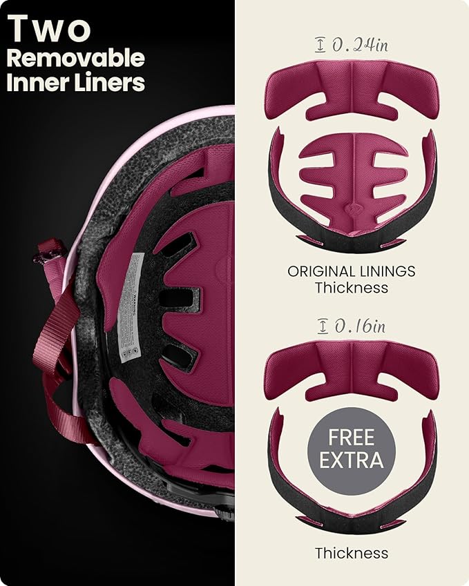 - Extra Removable Lining: Skateboard helmet with two removable liner for different head sizes and easy to wash the sweat away
