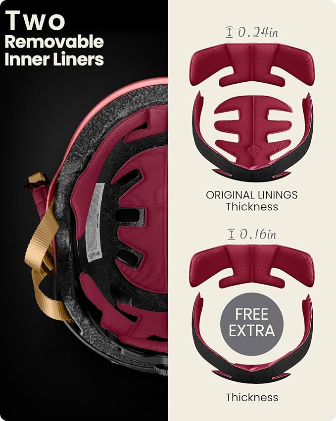 - Extra Removable Lining: Skateboard helmet with two removable liner for different head sizes and easy to wash the sweat away