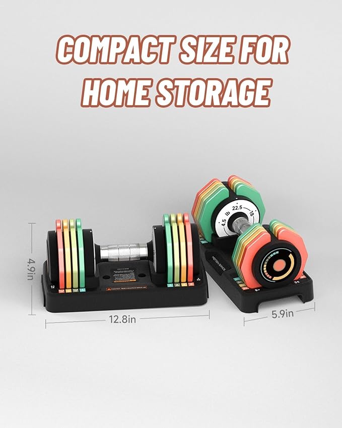- 🥇【5-IN-1 DUMBBELL SET】Train with 5 weight options in one dumbbell. Dumbbells adjustable weight from 4.5-22.5LBS, perfect for full-body workouts. Each pair can go up to 45LBS.