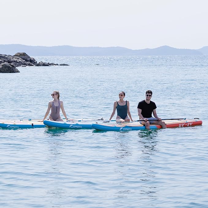 - 【PREMIUM MATERIALS】Our boards are crafted from quality military-grade PVC materials. Ultralight double wall PVC is 25% lighter than other same size products. Meanwhile, this reinforced lightweight fabric creates a firmness, anti-corrosion, wear-resistance sup board which can be used for years. Soft non-slip EVA deck pad makes you feel comfortable while ensuring your stability and safety when you stand for a long time. UPWELL paddle board is your choice for water sports.