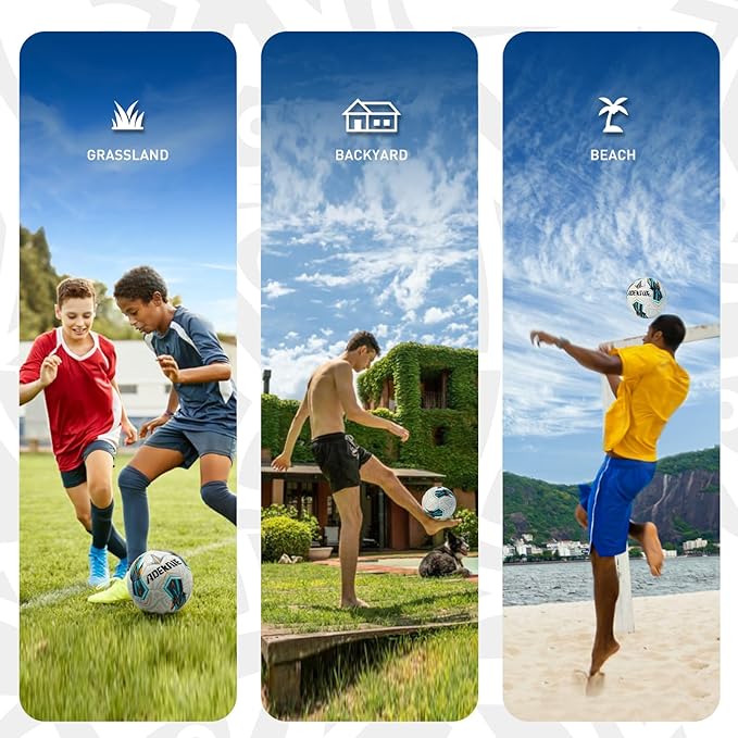 - 【Revamped for enhanced outdoor soccer experience】Our soccer ball boasts a premium PU cover and machine-stitching technology, making it ideal for every age and skill level. Whether on grass, in the park or on a smooth surface, it guarantees exceptional performance. Perfect for team training, parents and kids can bond over some thrilling soccer action. Experience endless soccer fun with our ball!