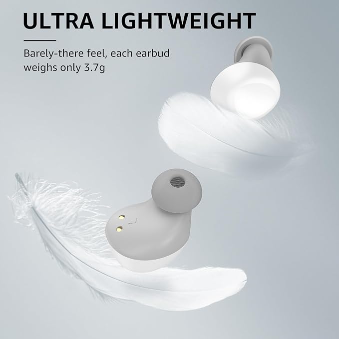 - [Ultra Lightweight and Compatible for Small Ear] The surface and Angle of A1 earbuds in-ear part have been polished and refined repeatedly to achieve a balance between beauty and comfort and make it comfortable to wear. Likewise, a single earbud weighs only 3.7g, making it as light as a feather and discreet in the ear. Ergonomic design provides a comfortable and secure fit that doesn’t protrude from your ears especially for sports, workout, gym.