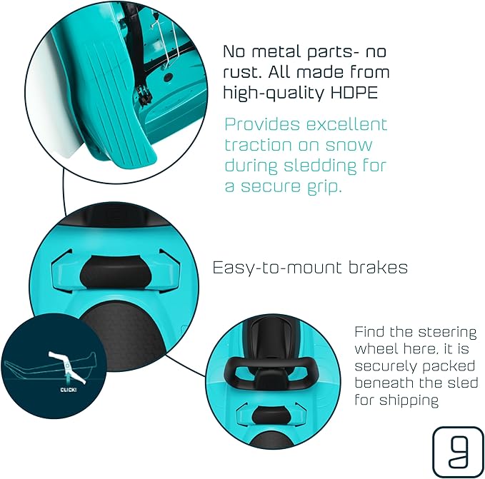 - Snow Sled With Brakes: A must-have for a safe and exhilarating sledding experience. The innovative design of the Stratos Snow Sled's brake system ensures that riders can easily stop, even on steep slopes