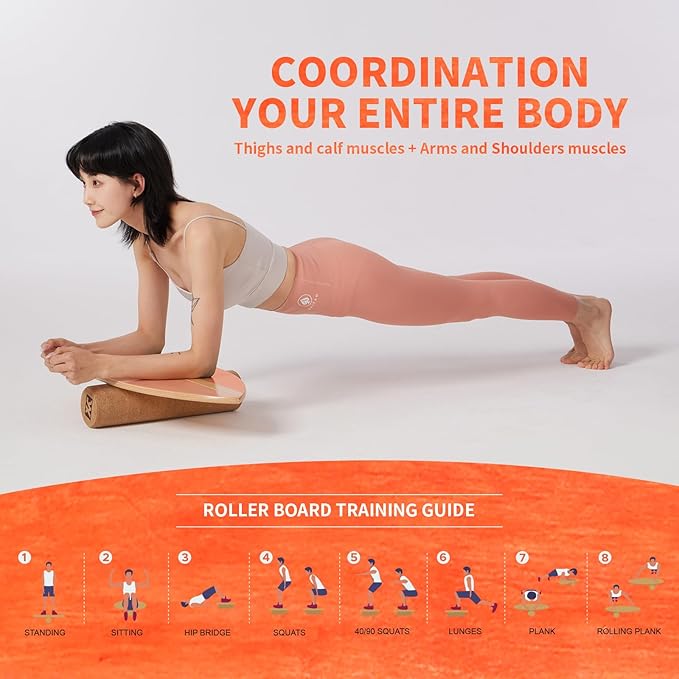 - WON’T SCRATCH FLOORS&EASY-GLIDE WOODEN ROLLER:The balance board surface is smooth and don't worry about damaging the floor.This roller also work great on different types of floor,including wood, carpet, cork, concrete,etc