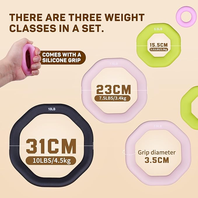 - Material:The power dumbbell ring made of cast iron+PVC coating,polygon design that anti slip when doing exercise.