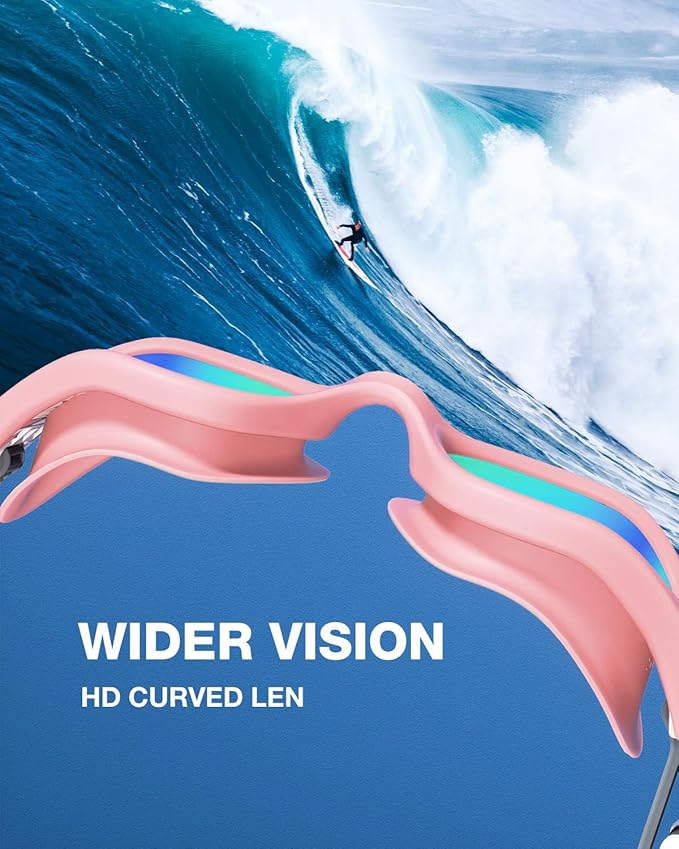 - Clear Panoramic View: Equipped with curved, high-definition lenses, the anti-fog goggles offer a wider peripheral vision. The 180° viewing angle ensures that you maintain visibility in crowded pools or open waters, keeping you safe at all times.