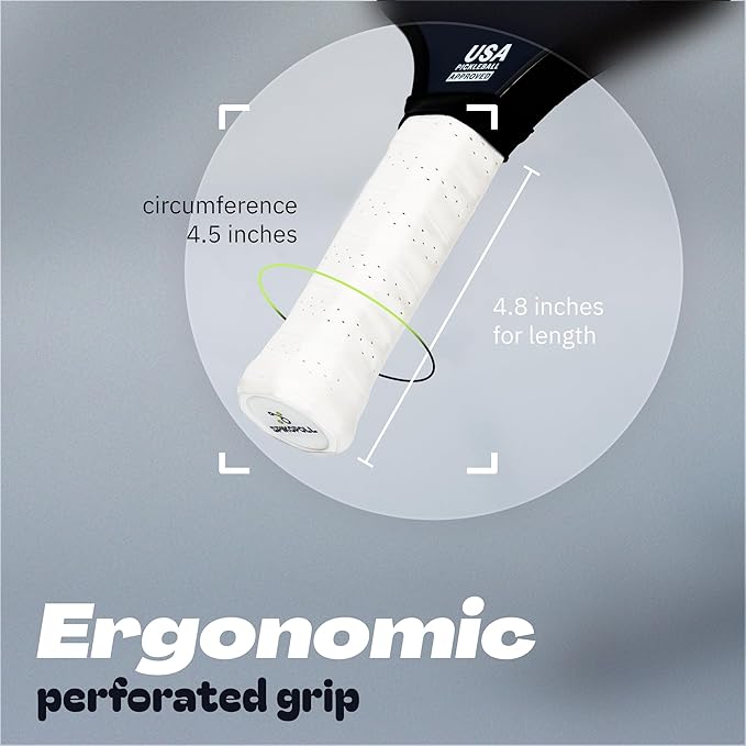 - ใ ๐๐ป๐ต๐ฎ๐ป๐ฐ๐ฒ๐ฑ ๐๐ผ๐บ๐ณ๐ผ๐ฟ๐ ๐ฎ๐ป๐ฑ ๐๐ผ๐ป๐๐ฟ๐ผ๐น ใThe SPI NEW pickleball paddles set of 2 prioritizes comfort with its ergonomic, perforated grip. This cushioned grip absorbs sweat and provides a secure hold, allowing you to focus on your game. The grip has a circumference of 4.5 inches, a width of 1.5 inches, and a length of 4.8 inches, giving ample space for wrist action to generate powerful strokes and pinpoint spin.