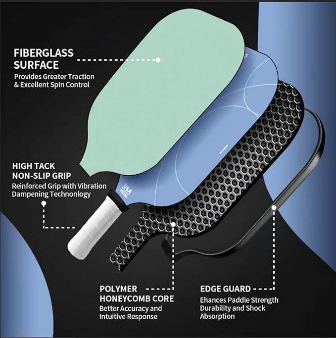 SPI New by SPIKOPOLL Pickleball Paddles Set of 2, USA Pickleball Approved, Lightweight, Durable Fiberglass Pickleball Rackets with Polypropylene Honeycomb Core