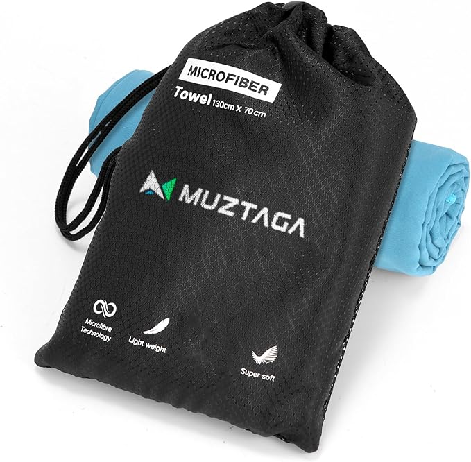 - This Muztaga microfiber towel is machine washable, sand-free, lightweight, breathable and durable. Perfect for camping,traveling, hiking, swimming, bath, gym, yoga.