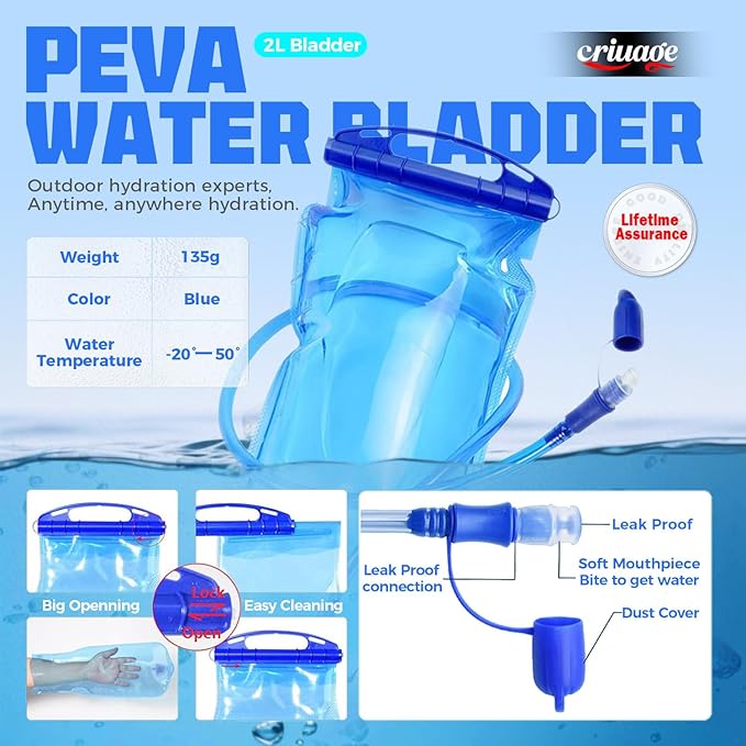 - 【Designed For Endurance】Criuage Hydration Vest Backpack is meticulously engineered for those who participate in endurance activities. It ensures that you stay hydrated throughout your outdoor or sport events. This waterproof running vest can accompany your Running, Jogging, Marathon, Climbing, Hiking, Cycling, Biking, Walking, Backpacking, Traveling, etc.
